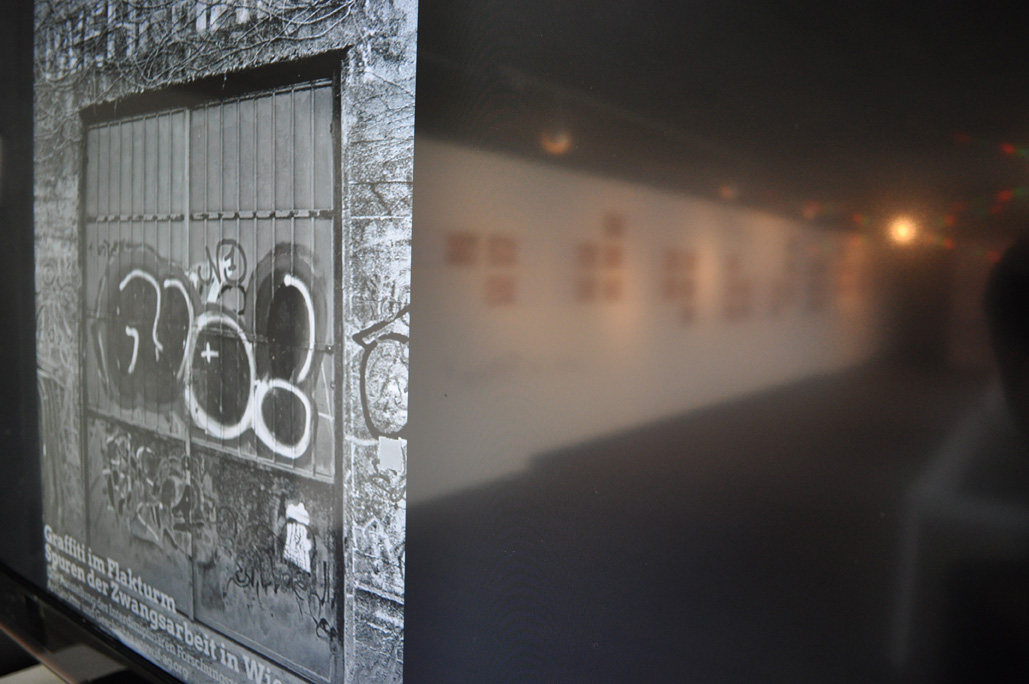 Anstelle von Führungen durch den ehemaligen Leitturm Arenbergpark im Gedenkjahr 2015, denen die Stadt Wien mit Verweis auf Sicherheitsbedenken nicht zustimmte, zeigt iFAG nun ausgewählte Graffiti aus dem Flakturm in der Passagegalerie des Künstlerhauses.