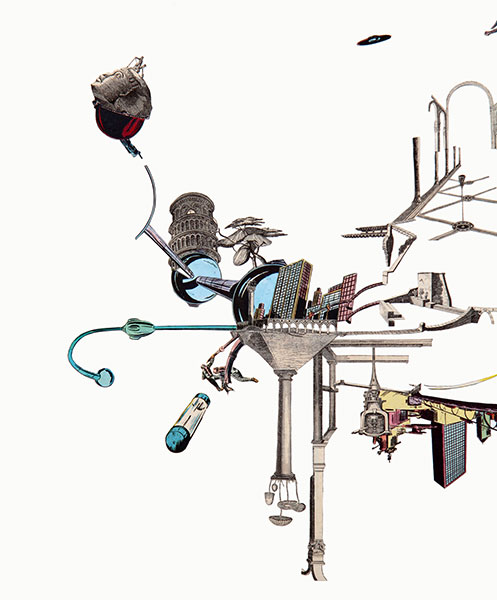 Sophie Dvořák, Establishing Shot (aus der Serie Archaeology of the Future), 2014, Collage auf Museumskarton, gerahmt, 120x155cm