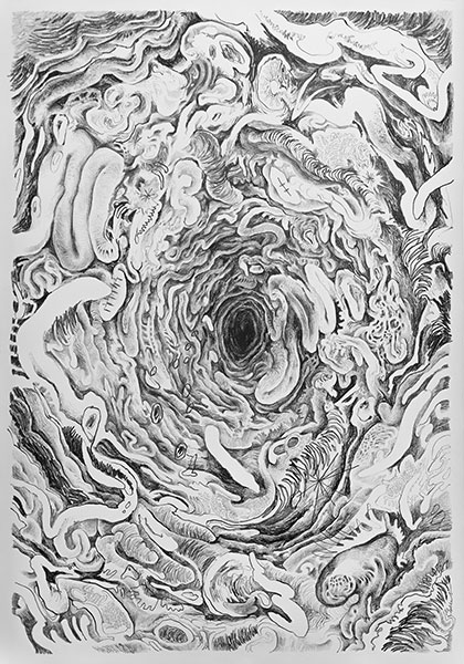 P { margin-bottom: 0.21cm; } Simon Goritschnig, ein leben/zentrum II, 2016, Buntstift auf Papier, 220 x 150 cm
