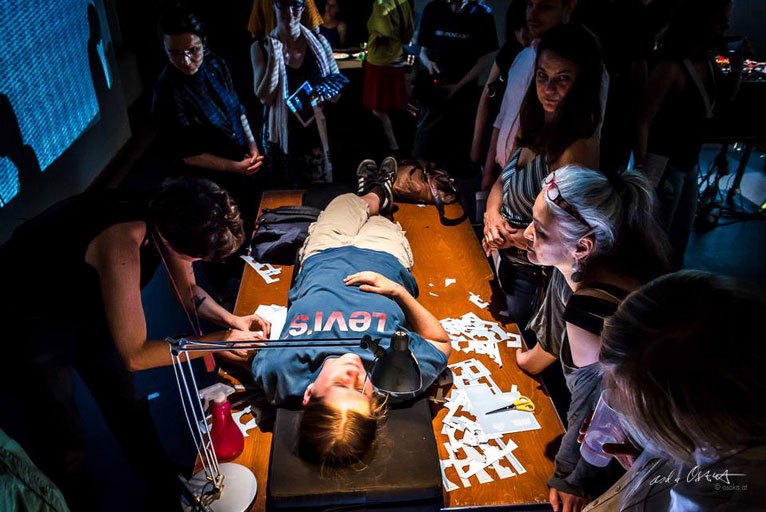 Die interaktive Installation wird mit performativen Interventionen zu bestimmten Zeiten über die vier Wochen verteilt verdichtete performative Situationen und Diskursmomente erzeugen.