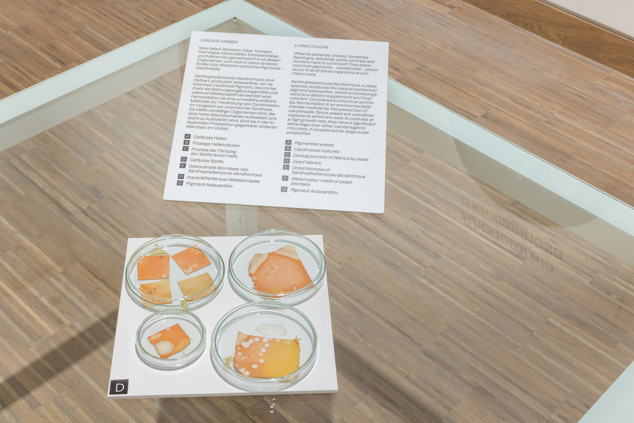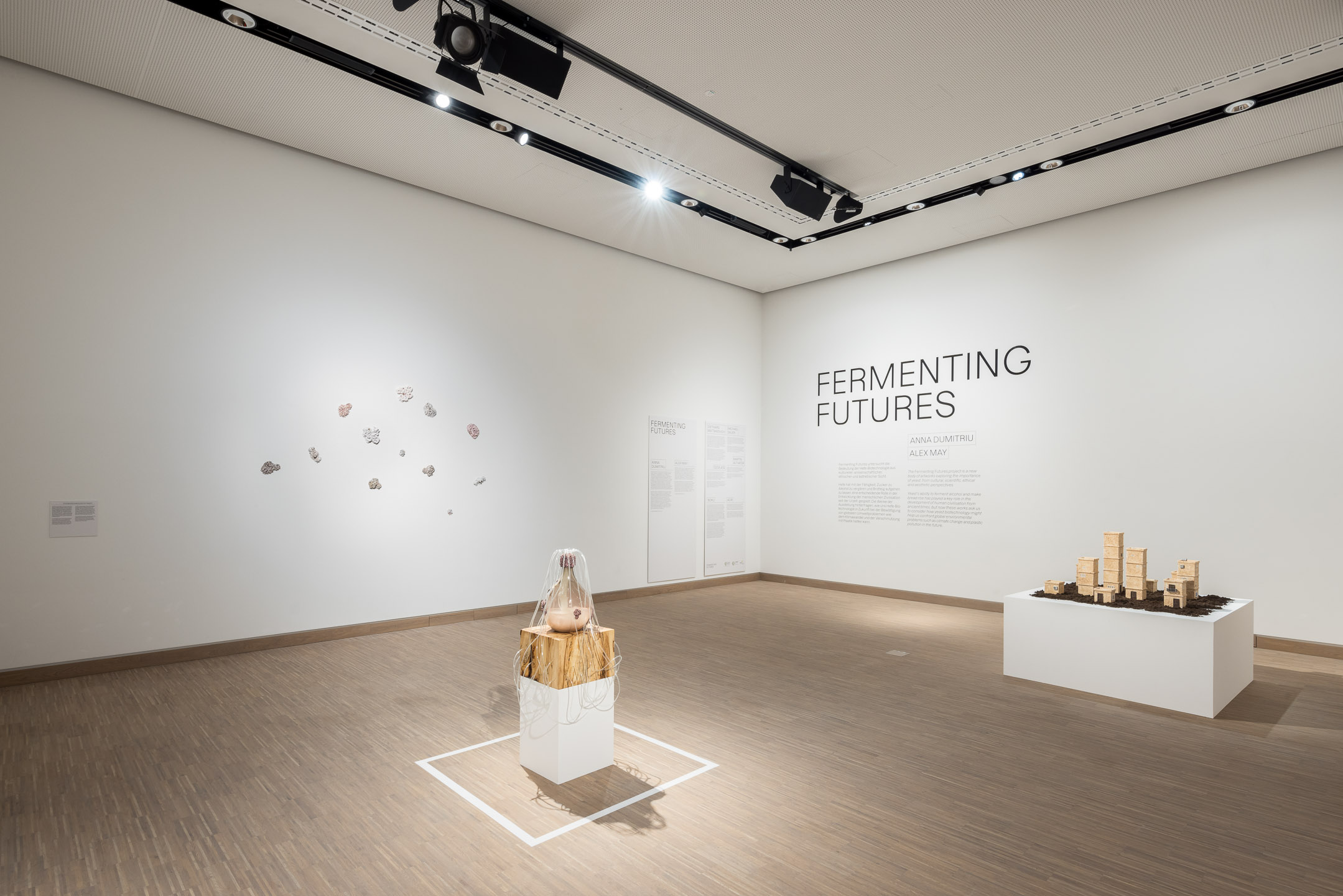 Die Ausstellung FERMENTING FUTURES von Anna Dumitriu und Alex May untersucht die Bedeutung der Hefebiotechnologie aus kultureller und ästhetischer Sicht und bezieht das Publikum in die Geschichte und Zukunft dieses Alleskönners der Fermentation ein. Anhand von eindrucksvollen Exponaten, die mit Hilfe von Hefe und biotechnischer Verfahren im Labor und im Atelier hergestellt wurden, wird die seit Jahrtausenden wirksame Wechselbeziehung zwischen Mensch, Hefepilz und Kultur vor Augen geführt.