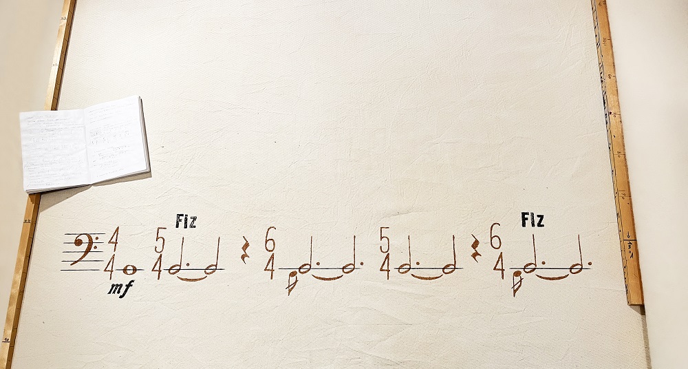 © Bruno Pisek - Hörfenster (Detail), 2024, Naturfarben auf Baumwolle/Leinen, 136 x 19 cm