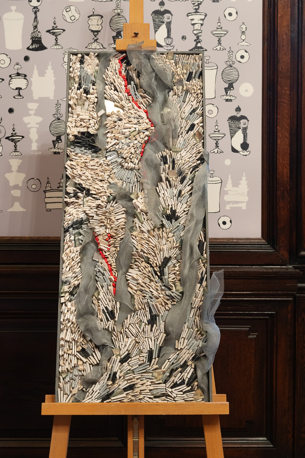 Musik ist nicht statisch. Sie bewegt sich, sie verändert sich und entwickelt sich weiter, genau wie das Leben. Jedes Steinchen meines Mosaiks, also jede Note des Stücks, das ich untersuche, ist eine Emotion: Eine Niederlage könnte durch eine melancholische Mollharmonie dargestellt werden; der Wunsch, weiterzumachen, schlägt sich dagegen in einem unaufhaltsamen Crescendo nieder, in einem starken, entschlossenen Rhythmus, der vorwärtsdrängt. Meine Musik – mein Mosaik – erzählt eine Geschichte, und wer meine Werke betrachtet, ist eingeladen, sein eigenes emotionales Geflecht zu weben und seine eigenen Freuden und Niederlagen zu erkennen, auch seine innere Stärke. Die Mosaiksteine aus Marmor und Glas vermitteln perfekt die Idee der Bewegung und machen langsam die Übersetzung des Musikstücks in Mosaik sichtbar.“