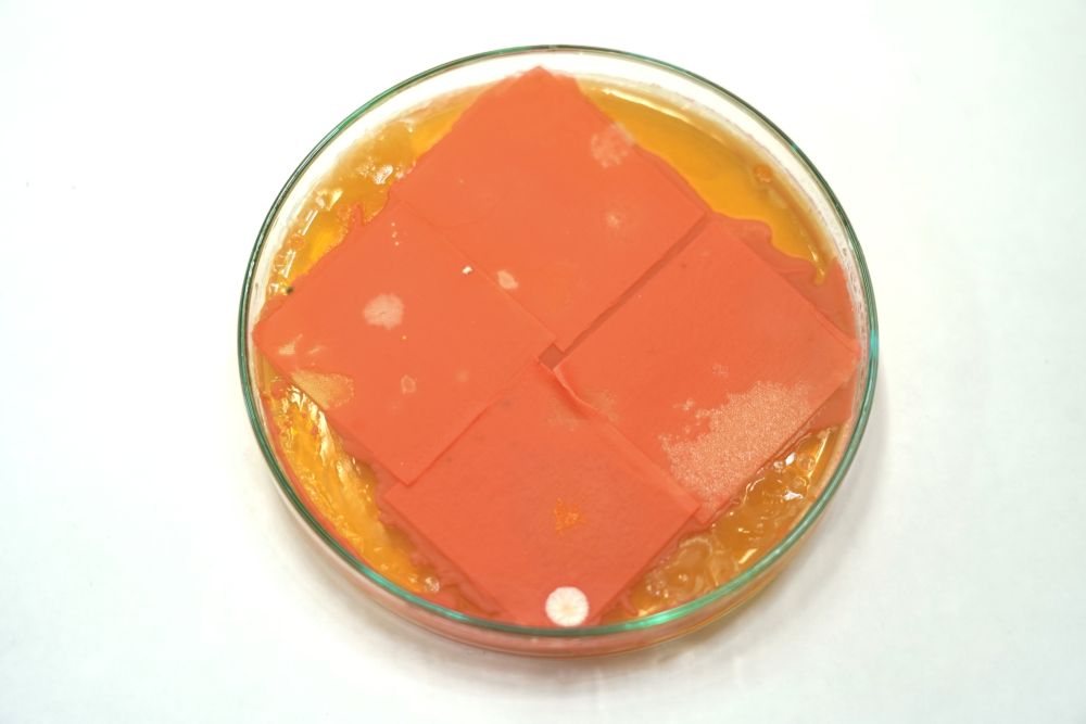 Außerdem beschäftigen wir uns noch mit dem Färben von Textilien: Wie ist es möglich, industrielle Prozesse durch nachhaltige und umweltfreundliche Verfahren zu ersetzen? Grundzüge dieser Idee, sowie technologisches Hintergrundwissen werden vermittelt. Zum Färben der Textilien werden spezielle Hefen kultiviert.