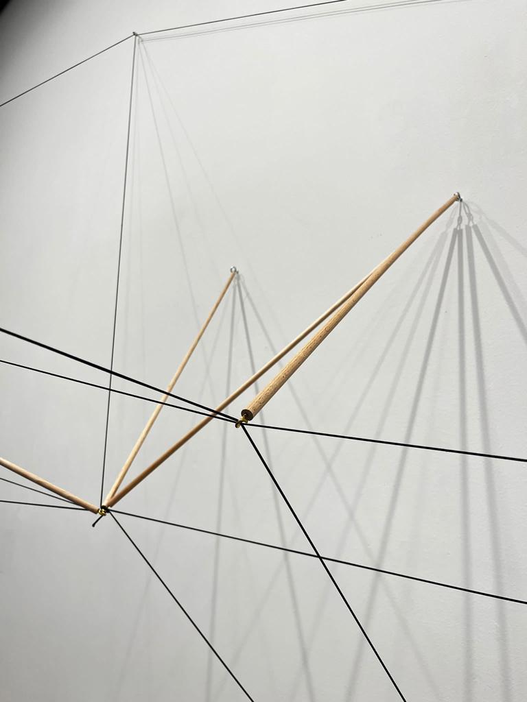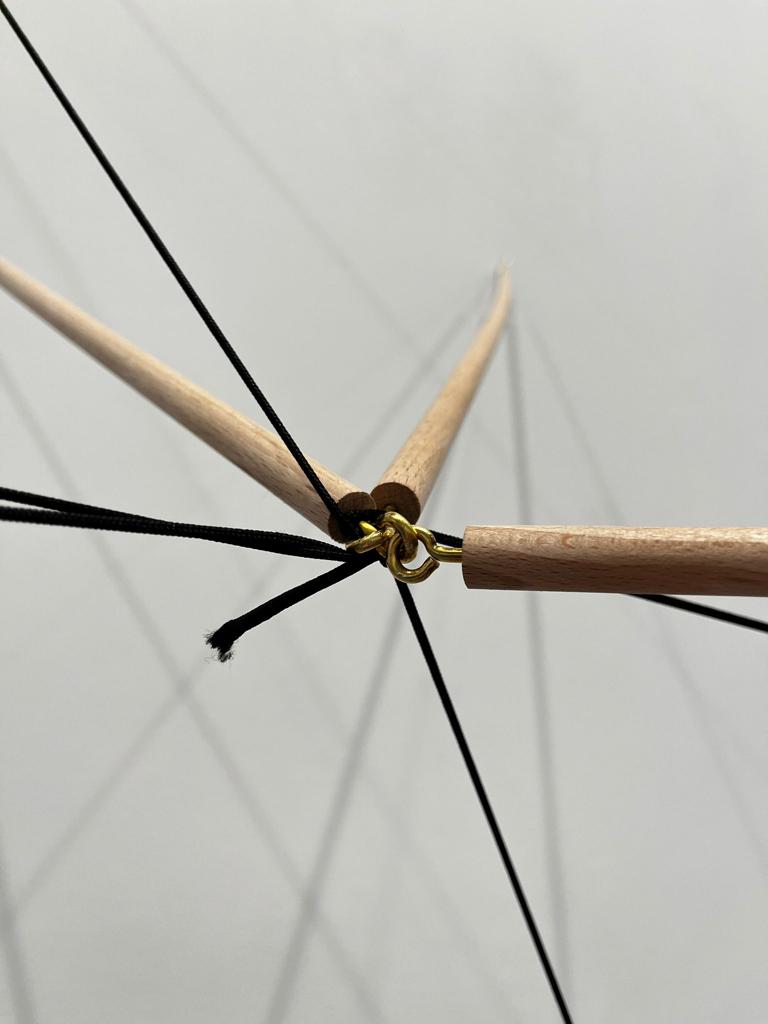 Distanzstäbe ermöglichen ein punktuelles Hineintreten in den Raum. Sie werden in die Struktur eingewoben und erzeugen zusätzliches Volumen.