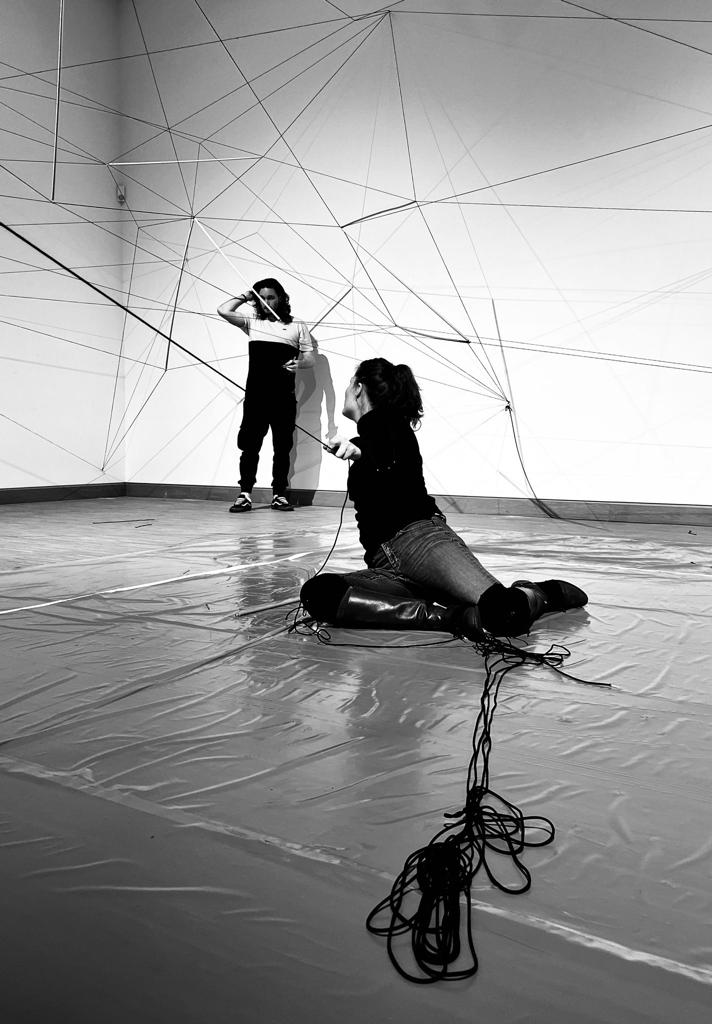Die Thematik des „Strickens als Prozess“ steht als Metapher für permanente Veränderung des Umfelds. Räume werden okkupiert, verkleinert, verdichtet.