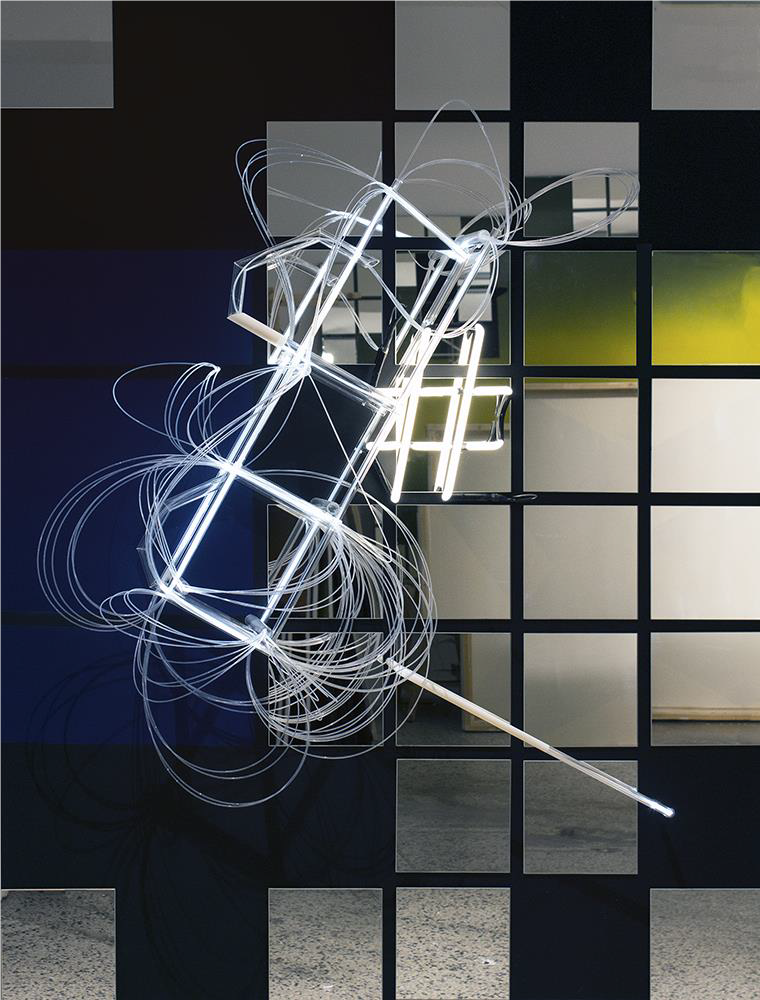 Das Kunstwerk "Noesis_#i, 2022" ist ein Denkmodell der Wirklichkeit. Im Kontext der objektorientierten Ontologie von Licht, übernimmt das Licht als dynamisches Material die zentrale Rolle im Beziehungsgeflecht von Architektur, Raum und Mensch. Licht hat keinen Maßstab, dennoch tritt es in Noesis-#i eingeflochten in gebaute Strukturen in Erscheinung und wird zum zentralen Handlungsträger im Hier und Jetzt.