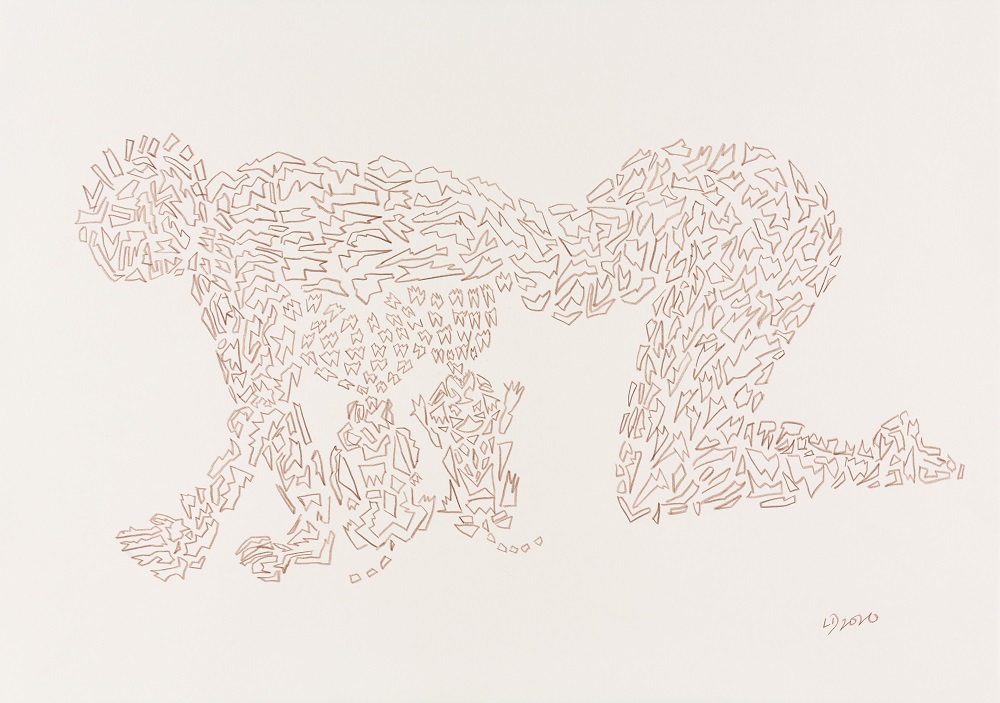 So neu wie die Geschichten, ist auch die Art der Zeichnung selbst. Eine völlig neue Sprache: fragmentierte Elemente in Form des Narrativs, die sich zu Figurationen formieren. Auf den zweiten Blick findet der Betrachter in den Flächen Hinweise zu Räumen weiterer Dimensionen. Sie verkörpern Umrisse wie eine Vase oder architektonische Grundrisse und finden sich in den Grundprinzipien der platonischen Formenlehre der Geometrie. De Melo beschreibt die Bilder als ein emotionales Kondensat geistiger Formulierungen, die zu einem Geheimnis geworden sind.