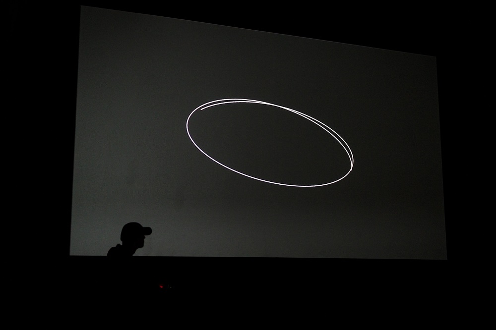 In dieser Darbietung arbeitet Daniel Lercher mit der Projektion eines digitalen Oszilloskops, über welches sogenannte Lissajous-Figuren und andere Visualisierungen der Tonebene abgebildet werden.