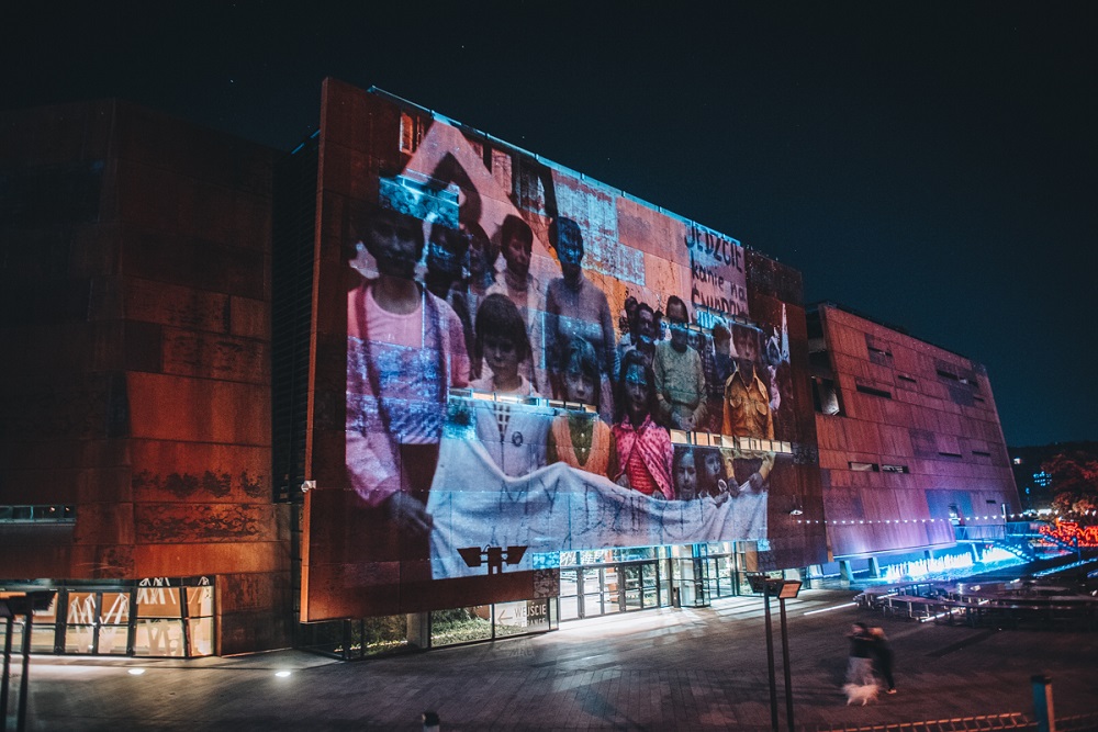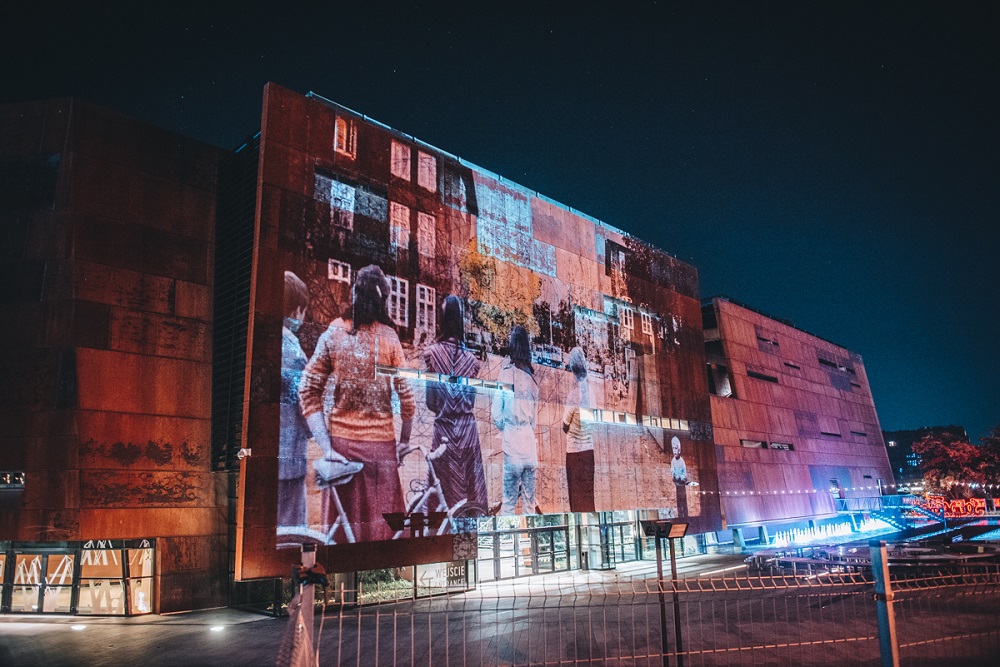 documentation of the large-formated projection in the historical Gdansk Shipyard’s gate no. 2, currently - it is a European Solidarity Centre area and building.