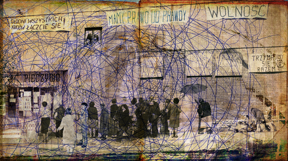 Based on archival material from the ECS (European Solidarity Centre in Gdansk, Poland), Sochacki has constructed his own narrative of the 21 postulates of the workers' struggle for freedom and basic human rights. Mentioned struggle took place in 1980 in communist Eastern Europe, during the strikes at the Gdansk Shipyard (then named after Lenin). Events in Gdansk contributed to political changes across Europe. In his project, he decide to give attention to the stories of places and people (women, children) that were casually omitted in the official records. Unnoticed in the stories of heroic struggles those beings were excluded from the participation in those tales; hence the title of the projection project: Existing in various fields, pointing into the future.
