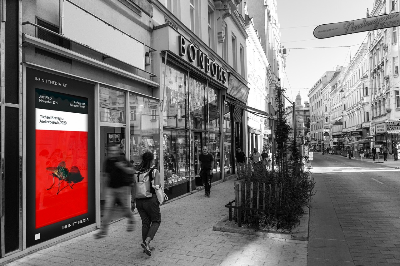 Infinity Media und das Künstlerhaus beleben ihre Partnerschaft neu und bringen zeitgenössische Kunst direkt auf die größten Screens der Stadt. Mit dem neuen ART FEED wird monatlich eine vom Künstlerhaus kuratierte Auswahl an Werken digital auf den DOOH-Screens von Infinity Media ausgespielt – prominent platziert im Herzen Wiens.