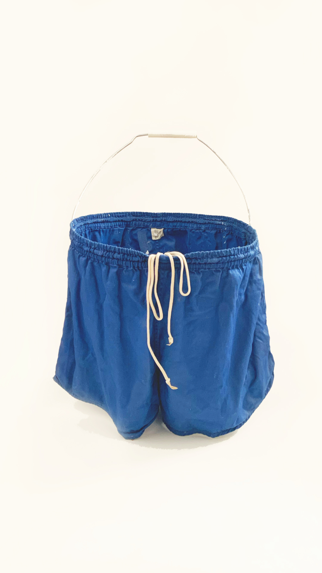 Rene van de Vandervoort/Bildrecht, Prêt à porter, 2007, Sporthose gestärkt mit Leim, Farbeimer-Henkel, 46 x 30 x 28 cm